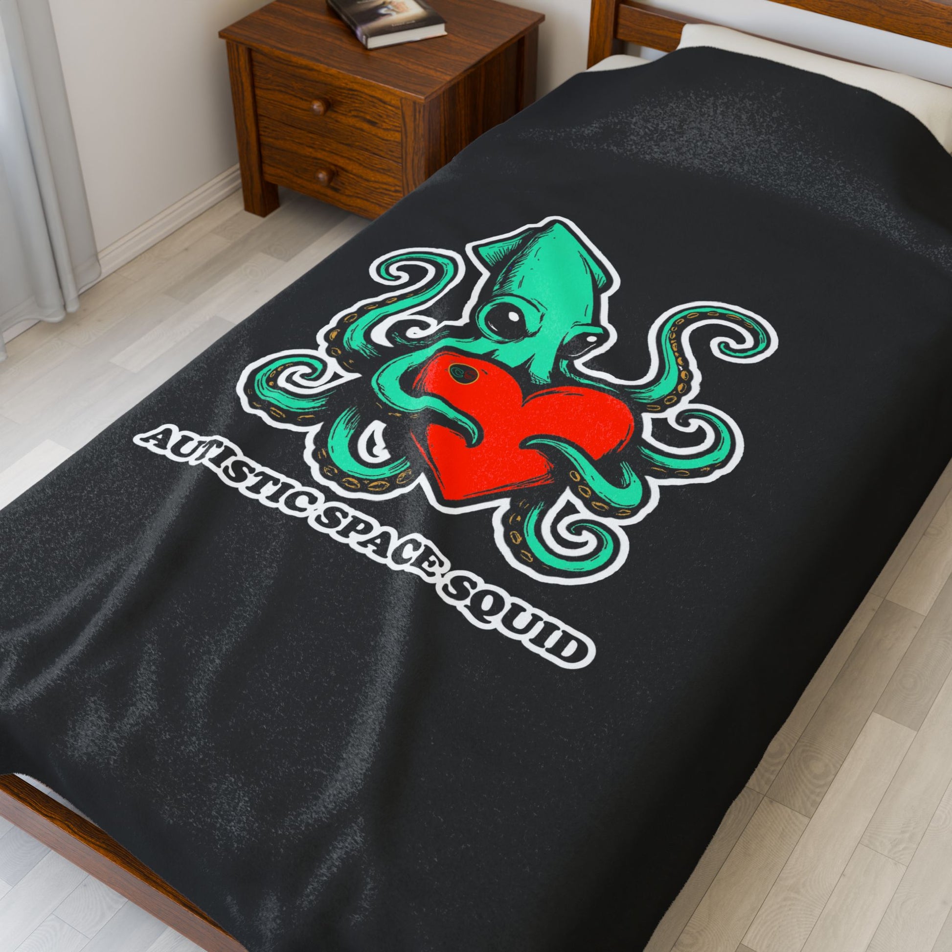 Autistic Space Squid Cinema Siblings Velveteen Plush Blanket - BLACK - Galaxy Quest: The Search for Earnestness