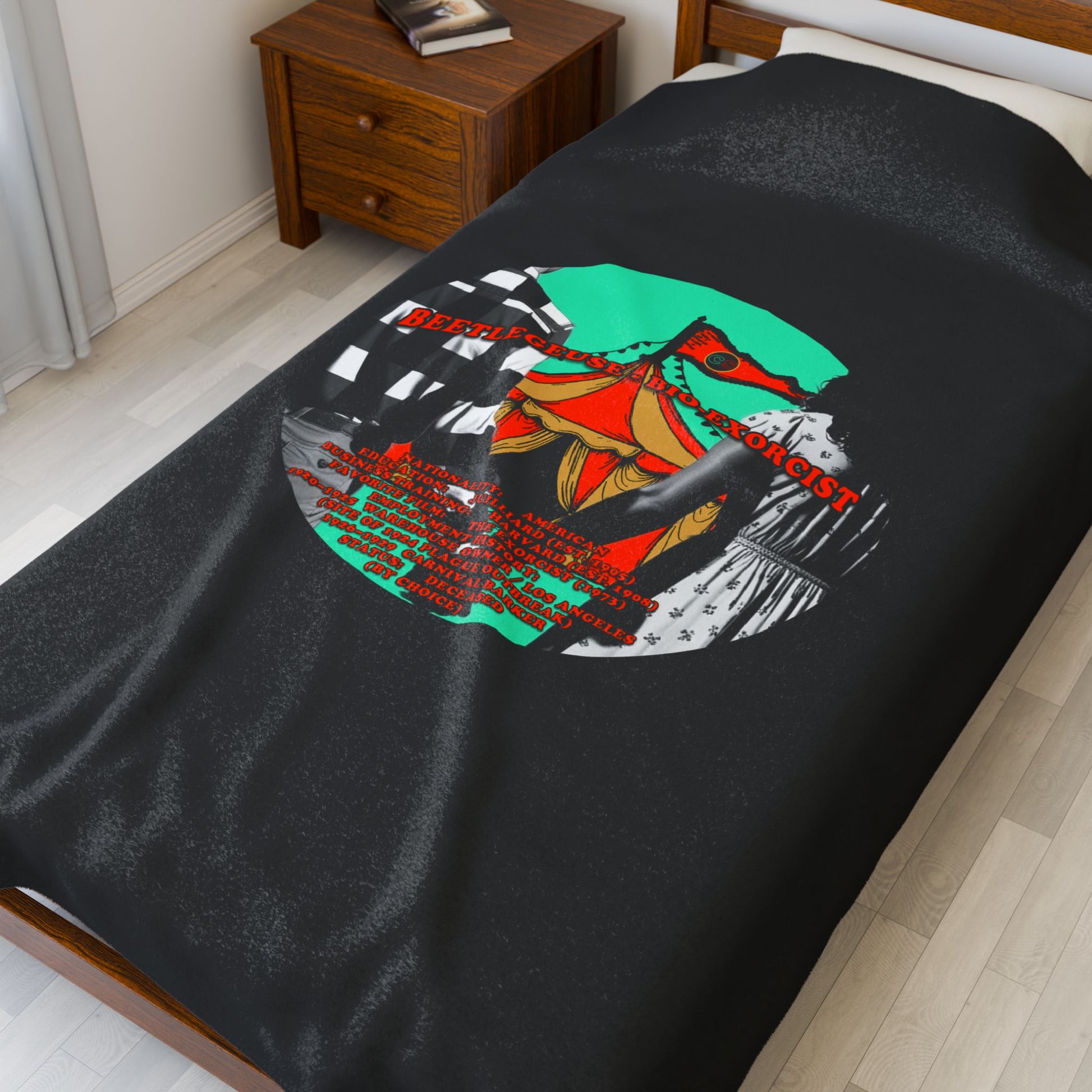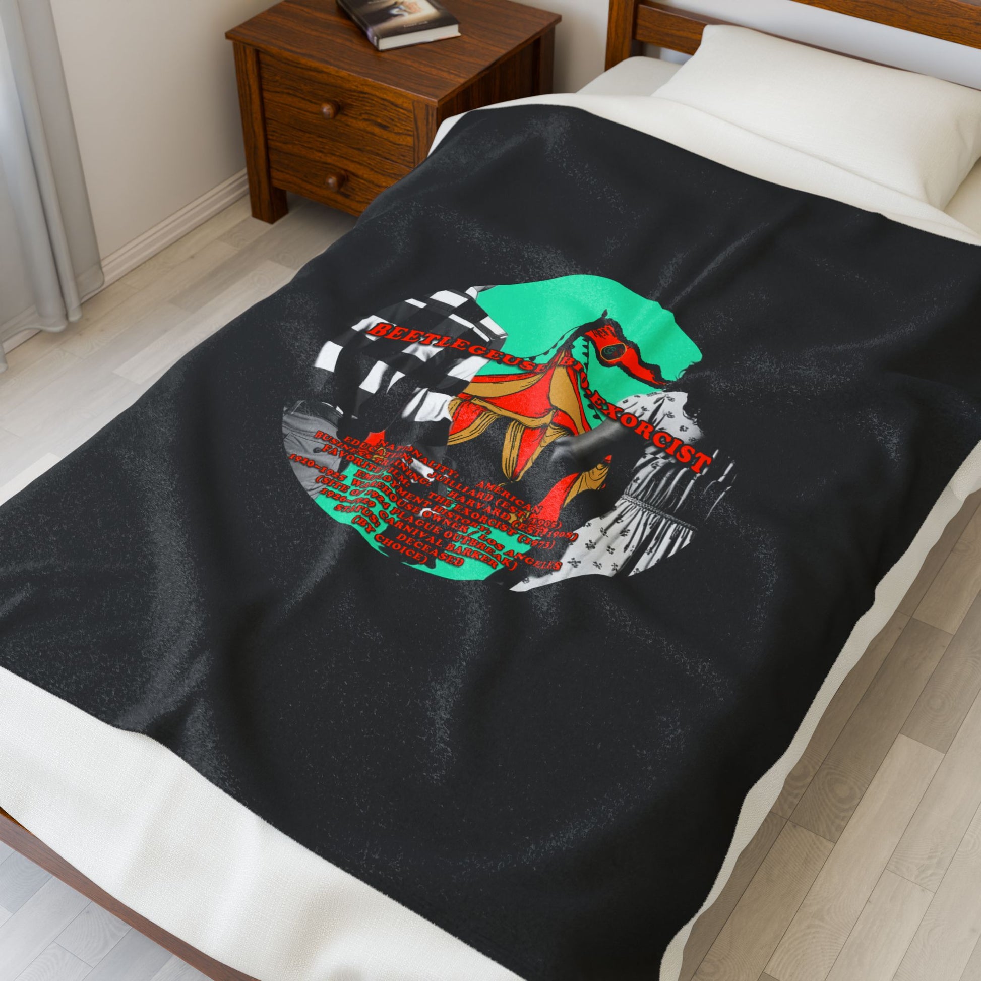 Demonic Resume Cinema Siblings Velveteen Plush Blanket - BLACK - Beetlejuice Beetlejuice Malice for Motherhood