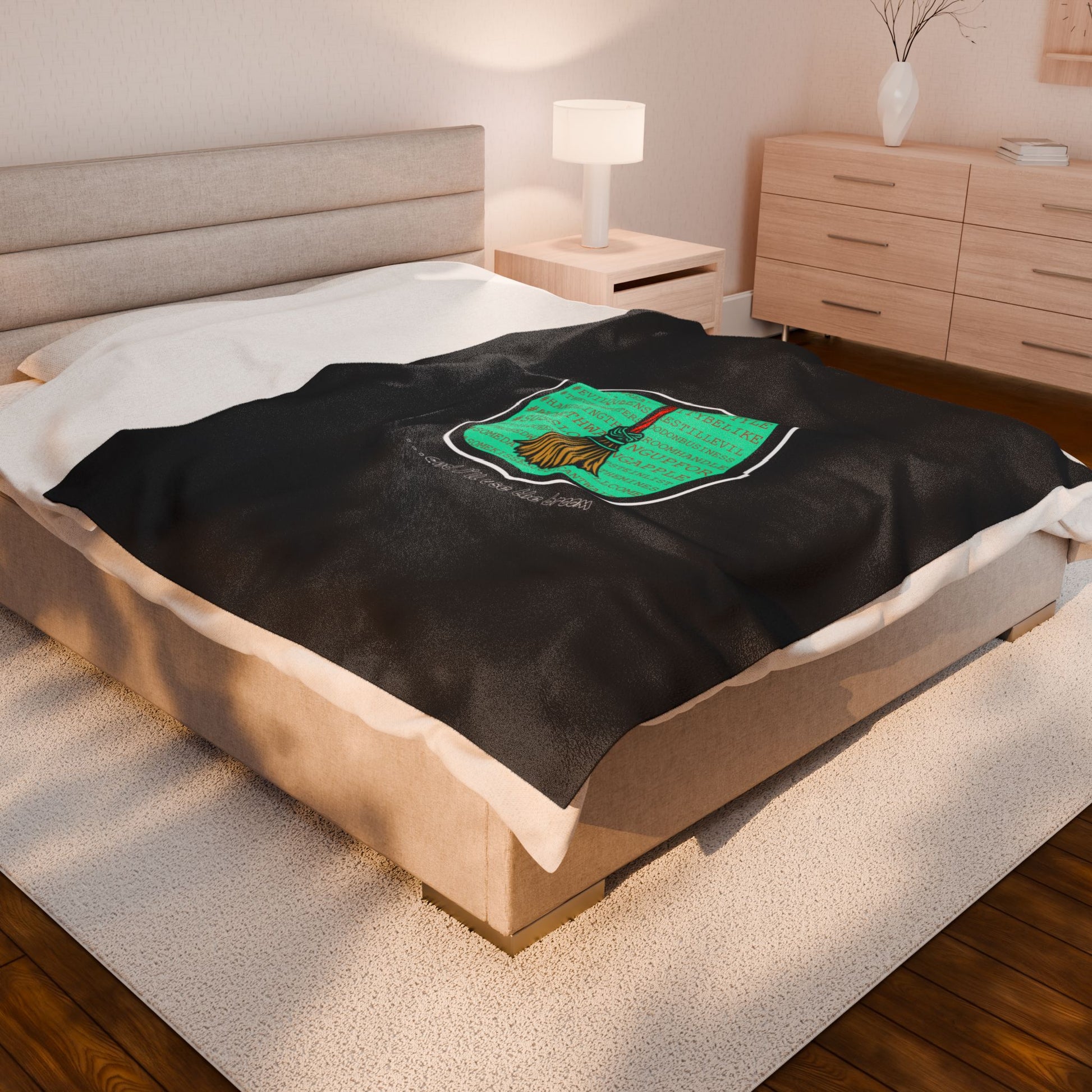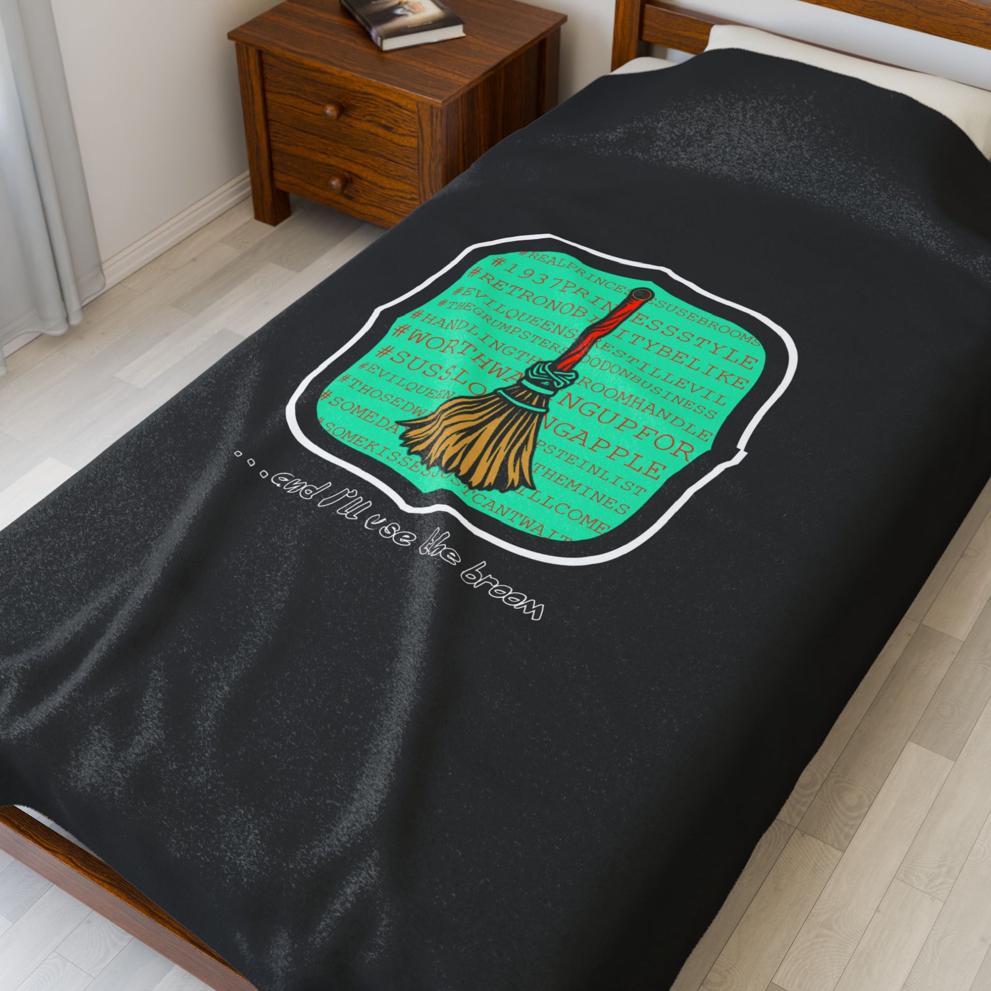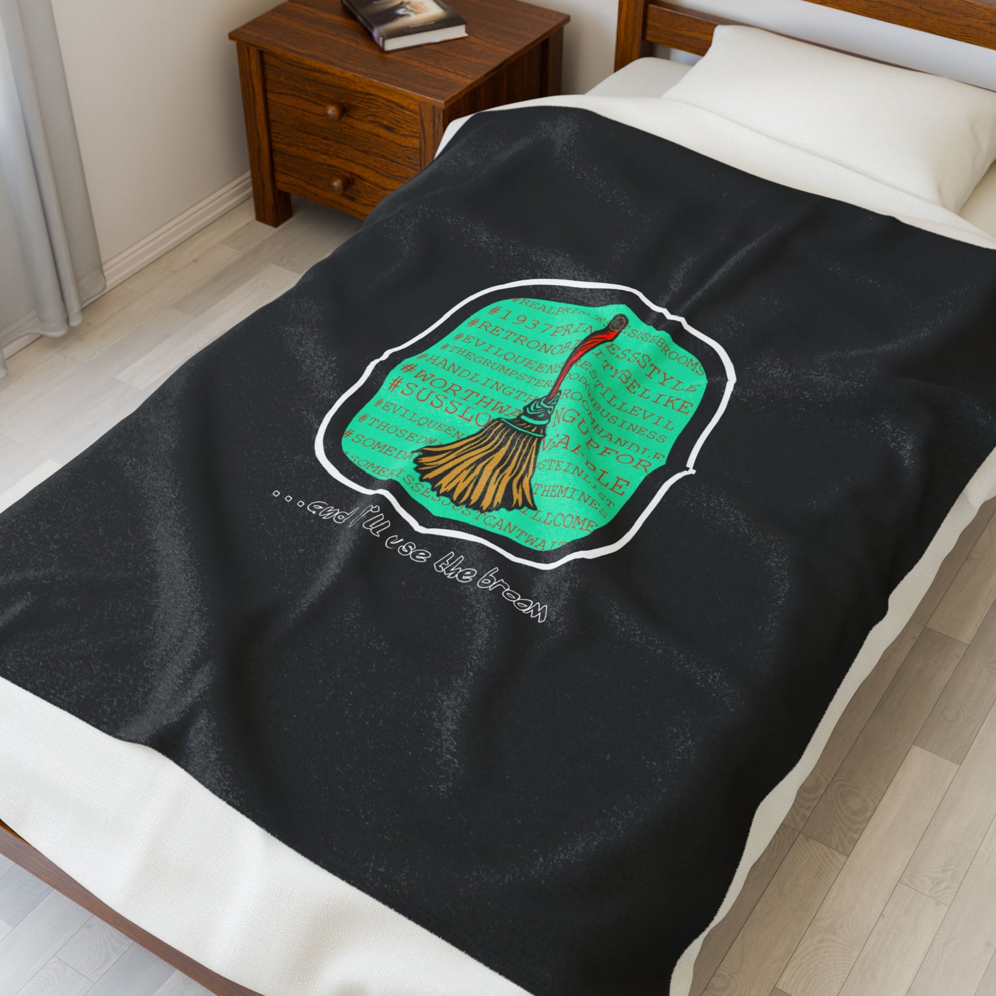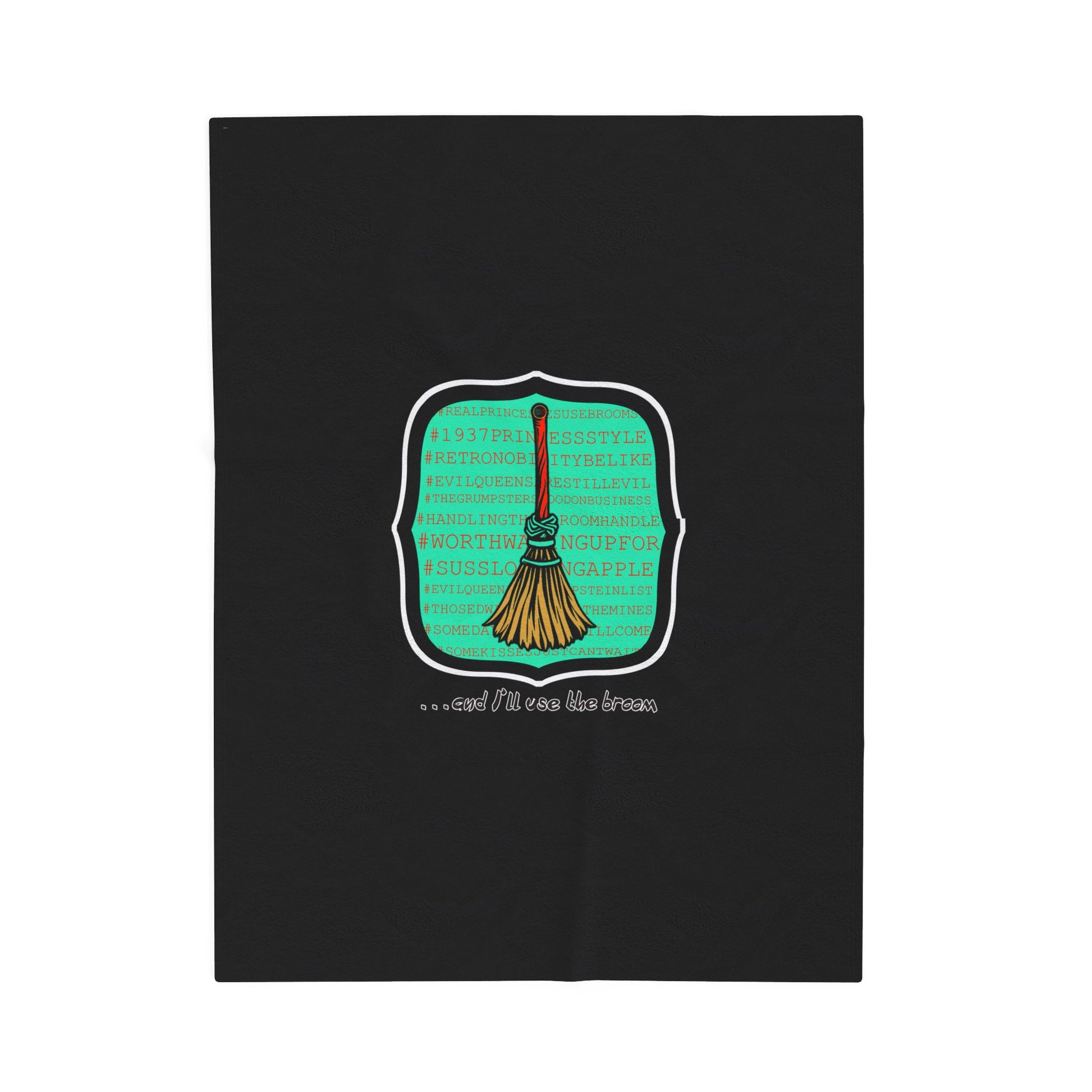 Snow White - Princess to Prop(paganda) Cinema Siblings Velveteen Plush Blanket - BLACK - and I'll Use the Broom